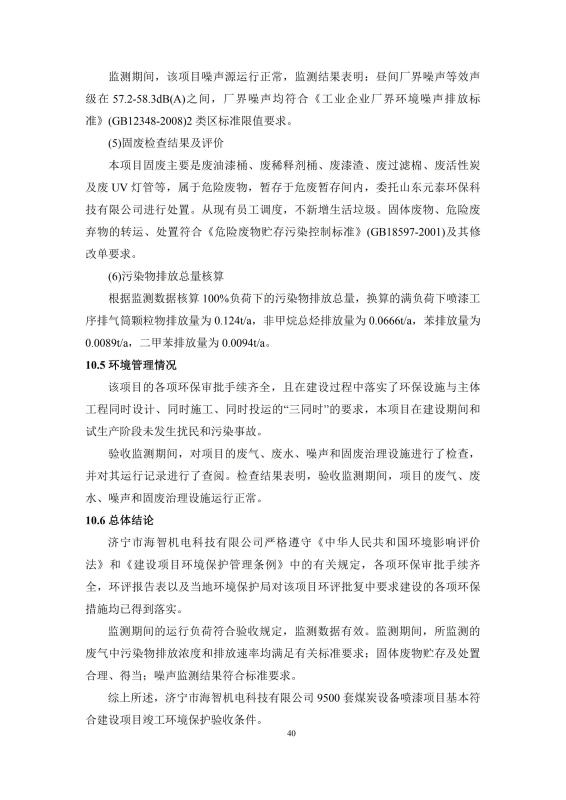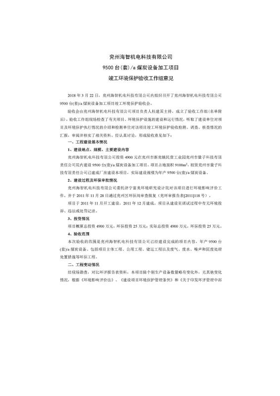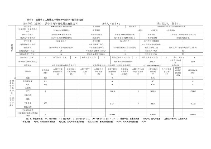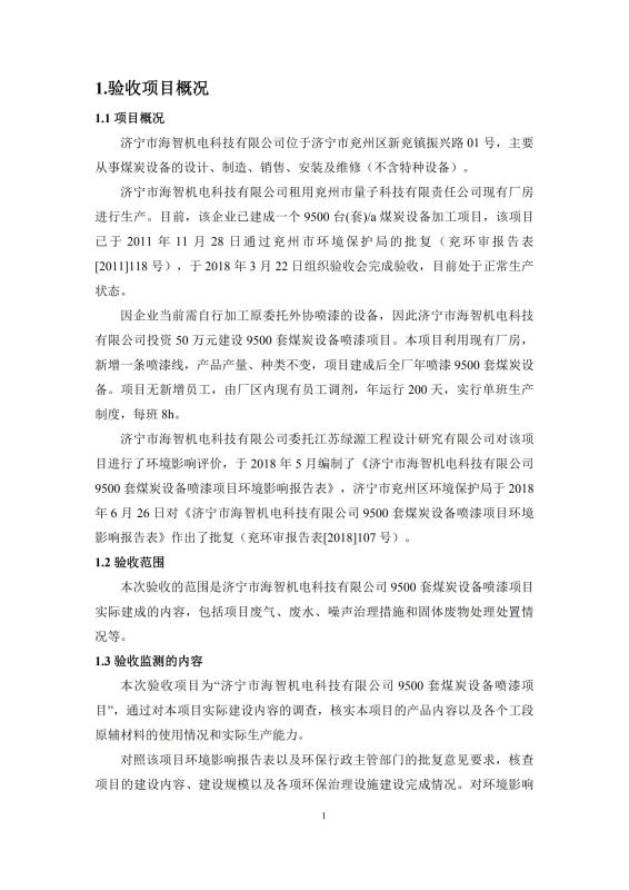 > 9500套煤炭設備噴漆項目竣工環(huán)境保護驗收監(jiān)測報告