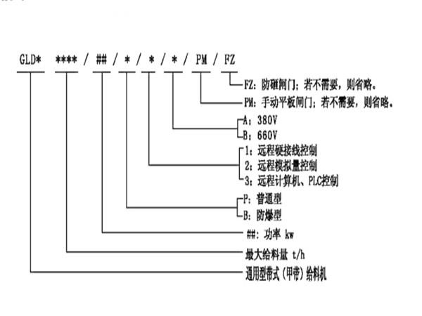 變頻調(diào)速給料機(jī)型號(hào)說(shuō)明: